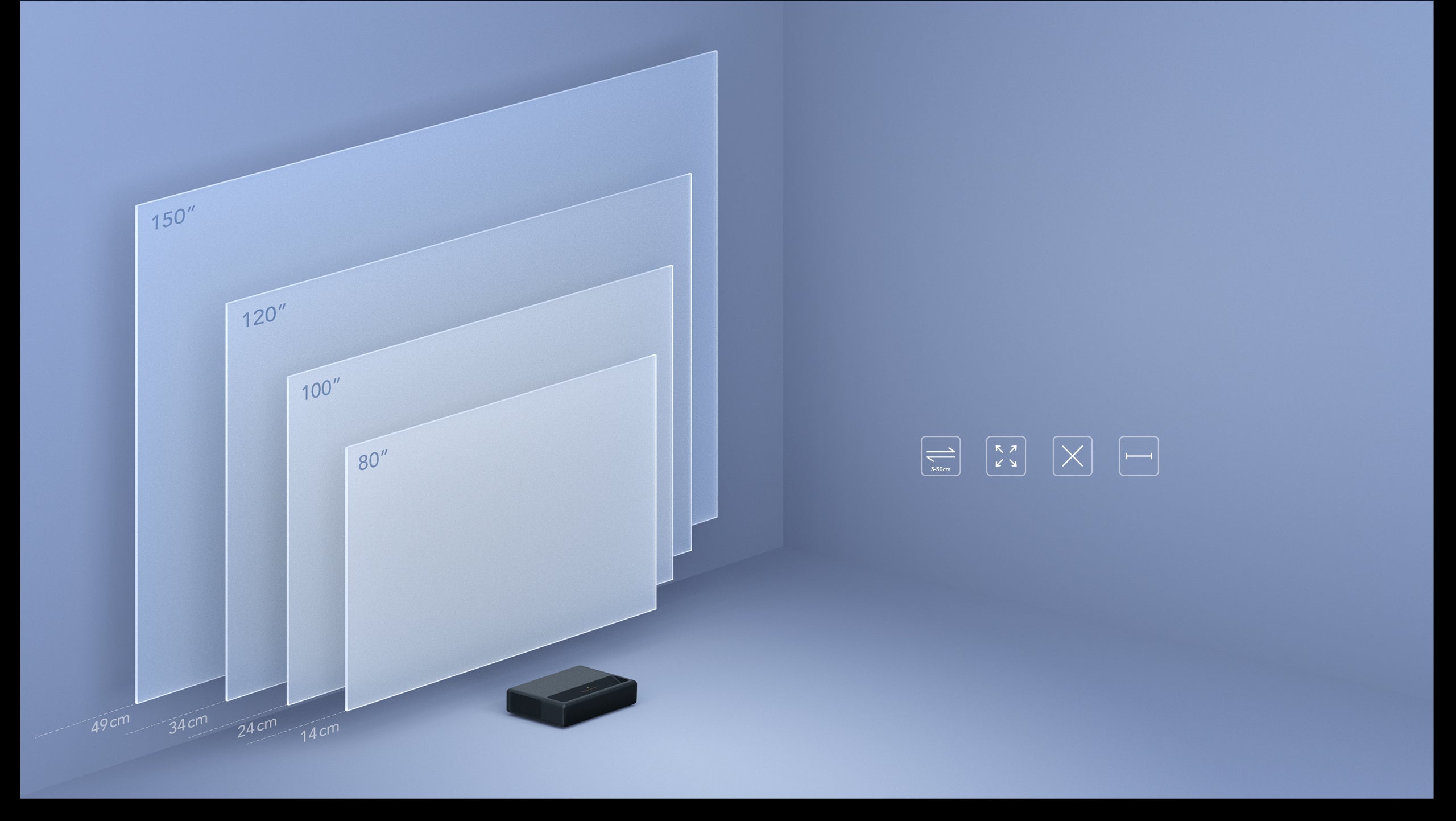5. Adjustable picture size 40–200"; recommended picture size 80–150"