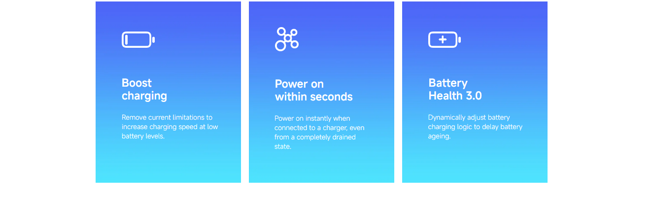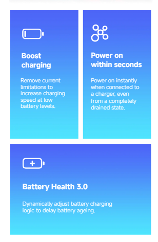 The smart battery management system learns your daily charging habits and adjusts the voltage and current in real time to