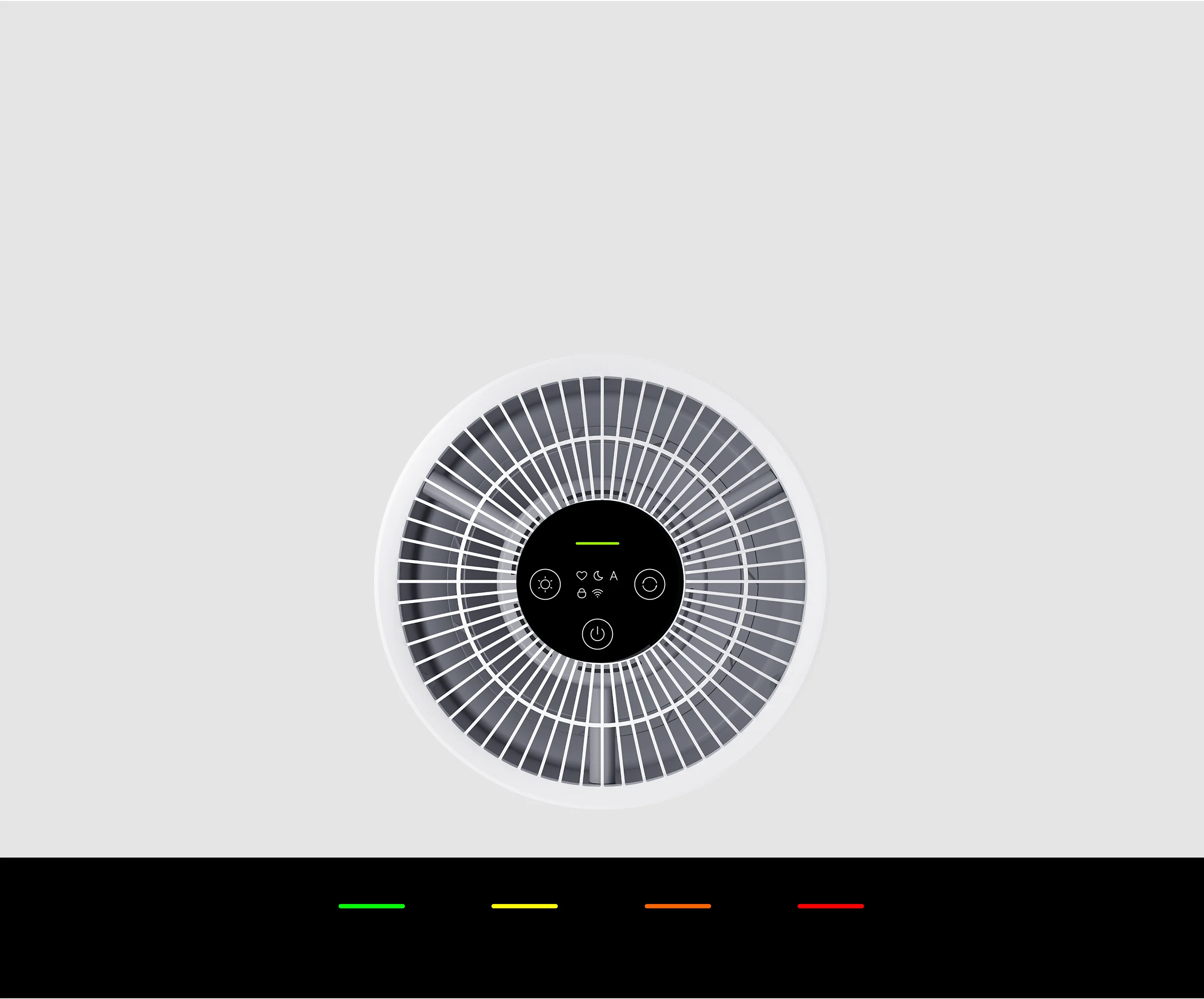 Intuitive indoor air-quality data from four-color indicator light. Adjust your purification settings with the simple touch control buttons, one light touch to fulfil your air-quality needs.