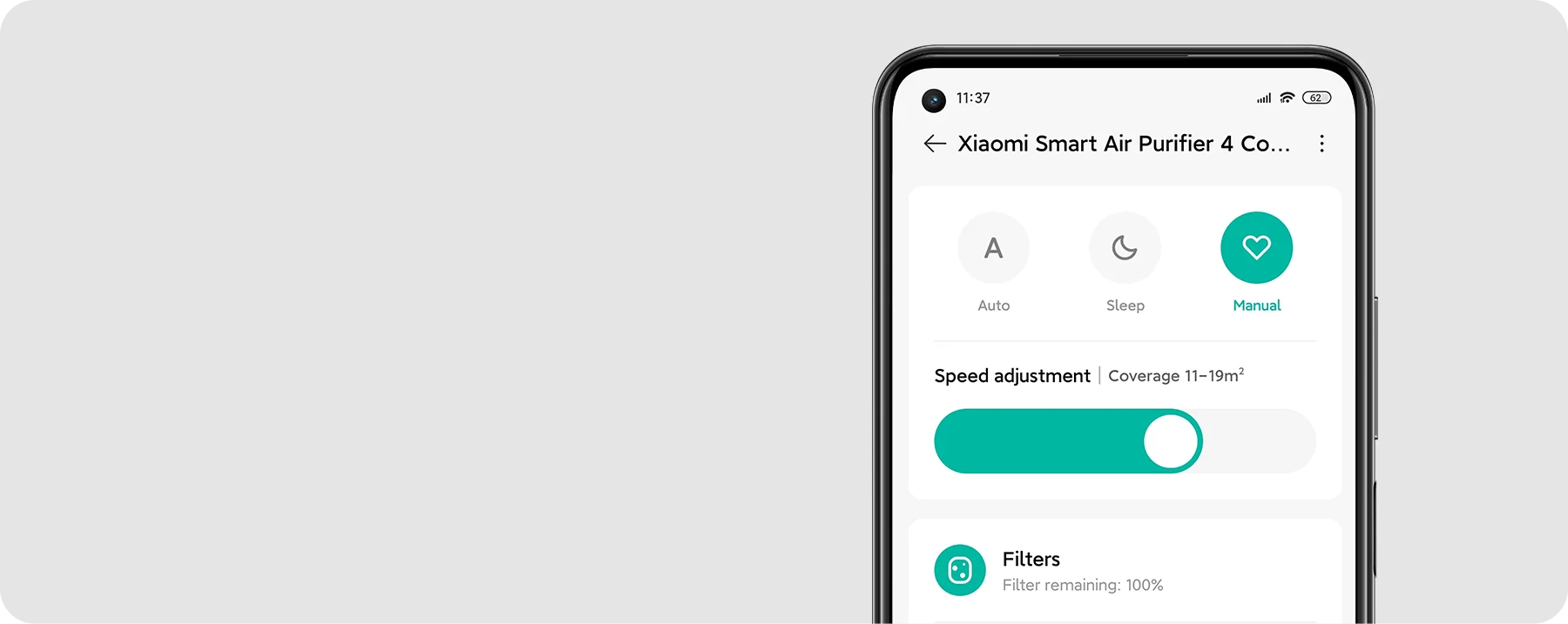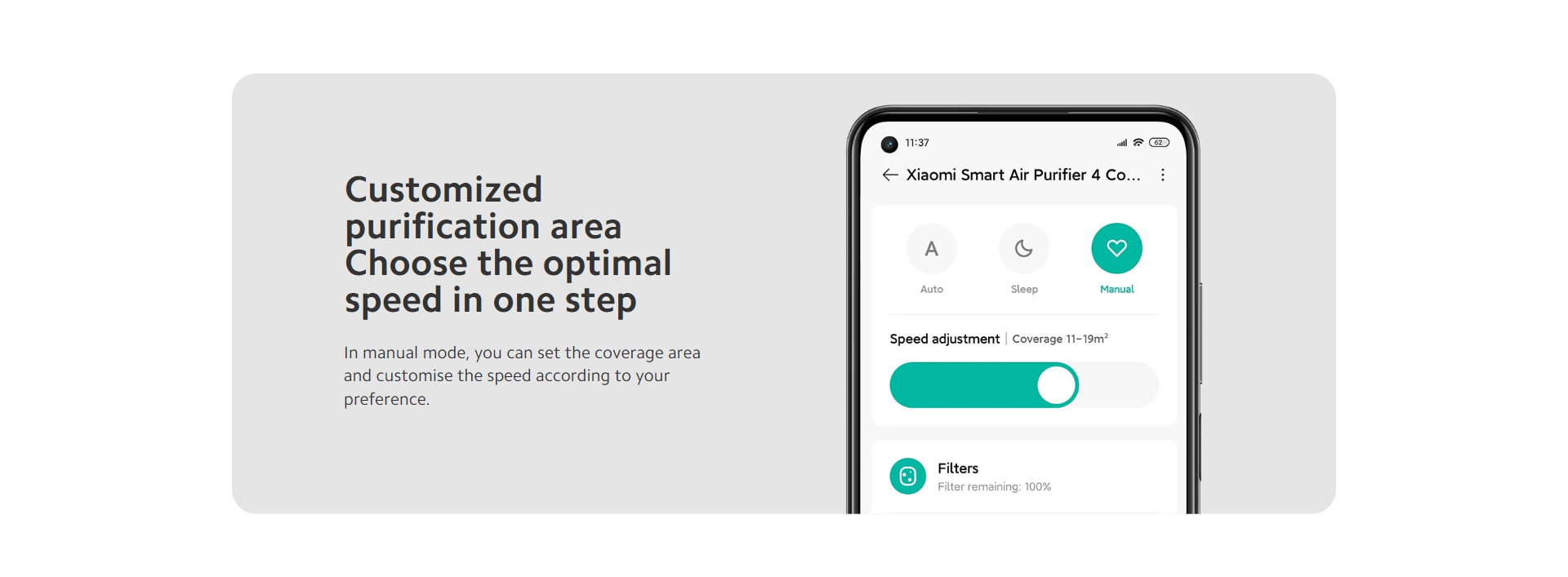 In manual mode, you can set the coverage area and customise the speed according to your preference.