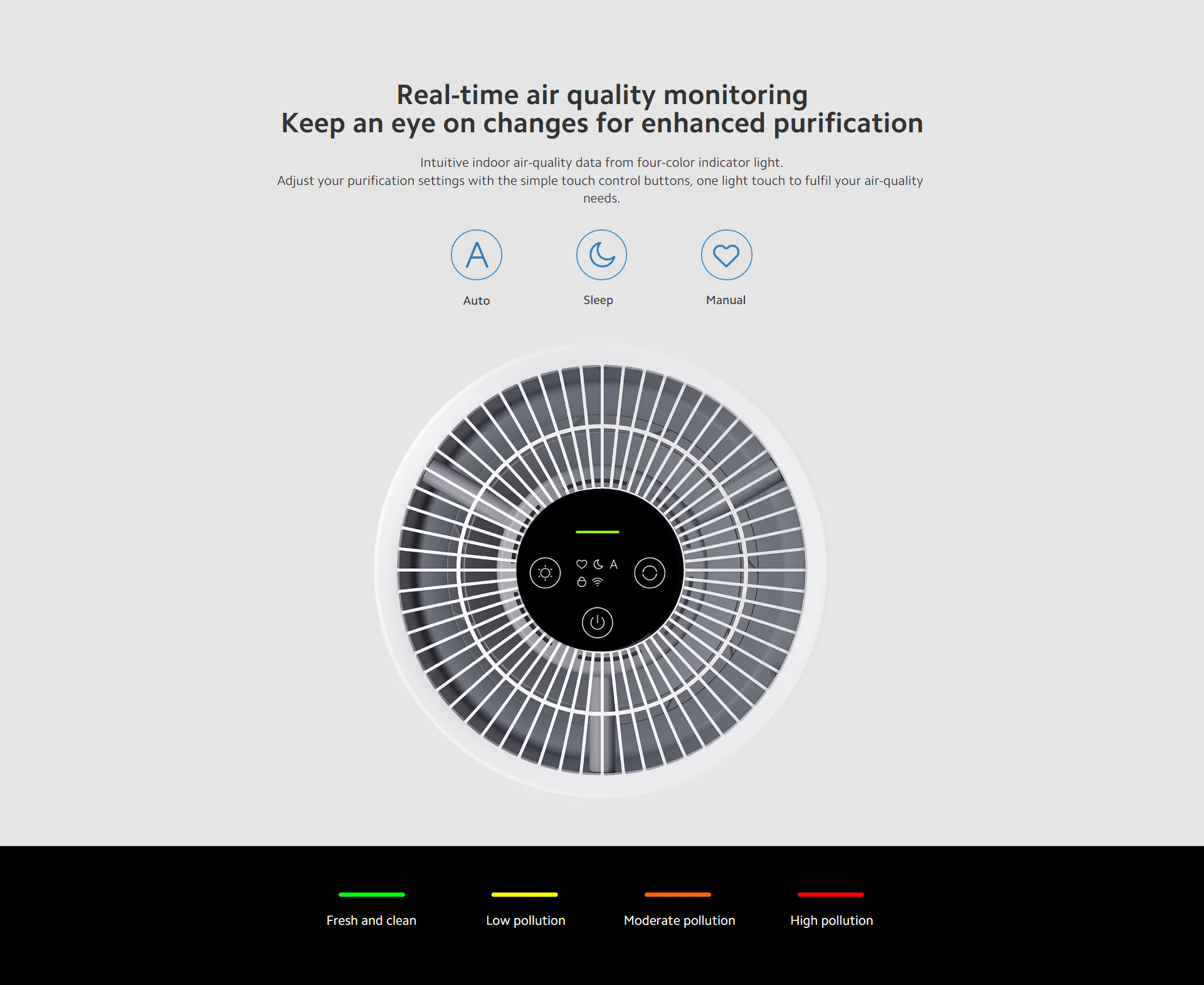 One-touch Auto Mode Real-time monitoring, high-efficiency purification