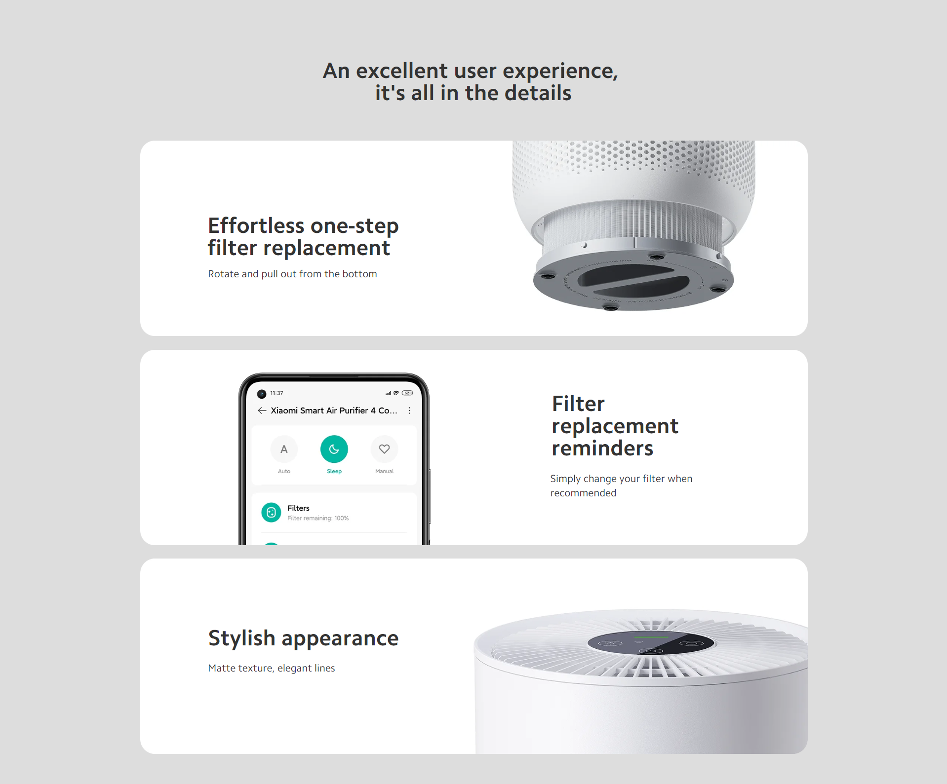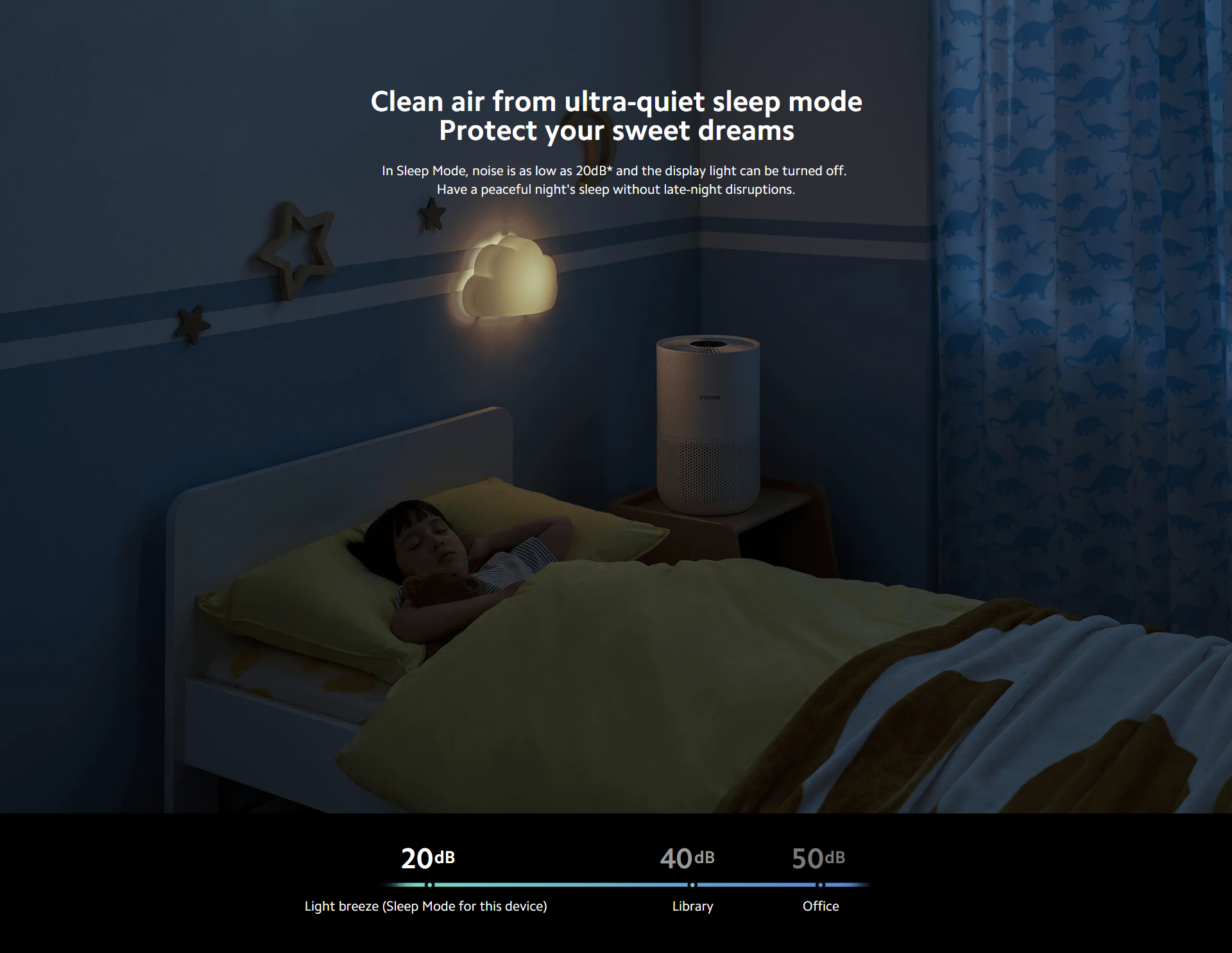 Clean air from ultra-quiet sleep mode Protect your sweet dreams