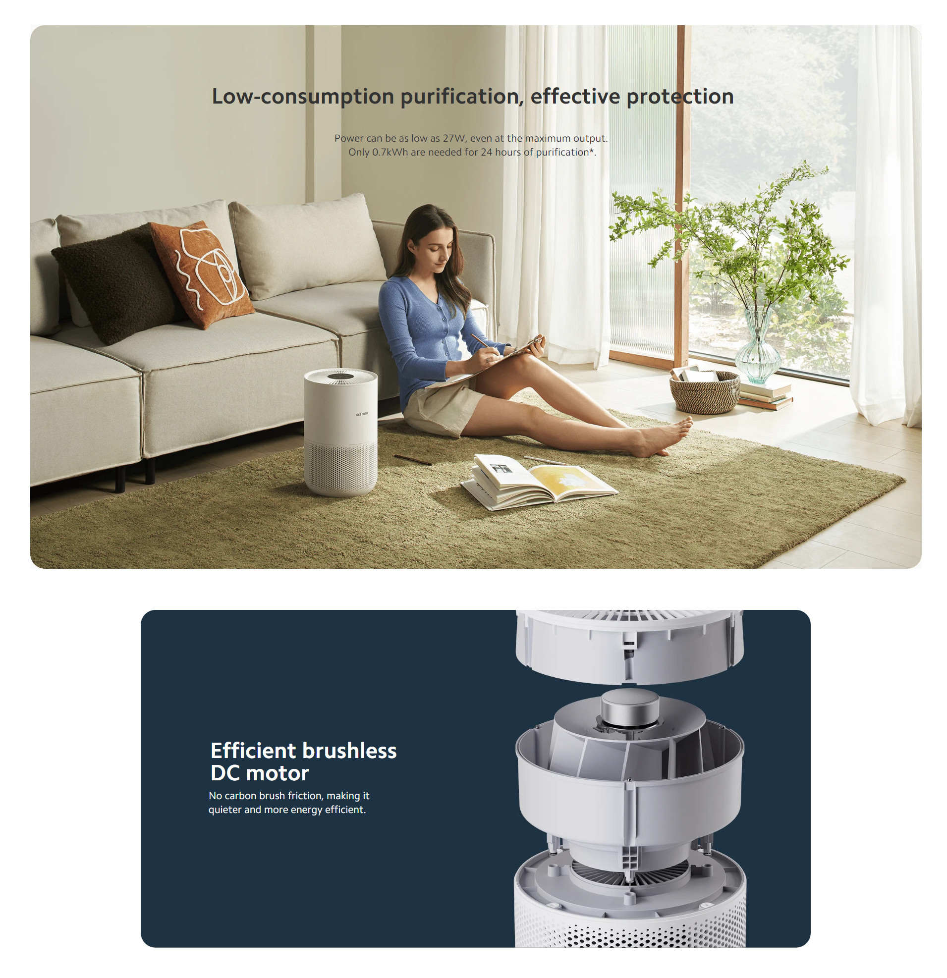 * Only 0.7kWh are needed for 24 hours of purification: 27W x 24h ÷ 1000 = 0.684kWh. 24h power consumption of 0.684kWh, approximately 0.7kWh.