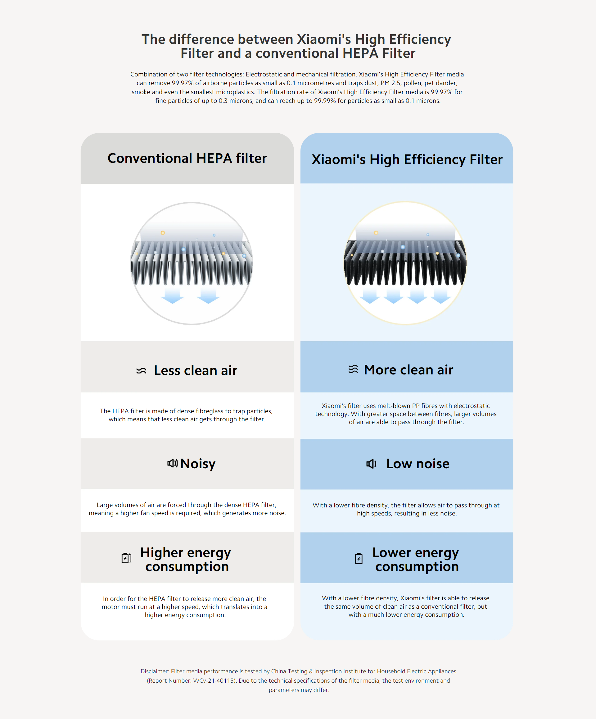 The difference between Xiaomi's High Efficiency Filter and a conventional HEPA Filter