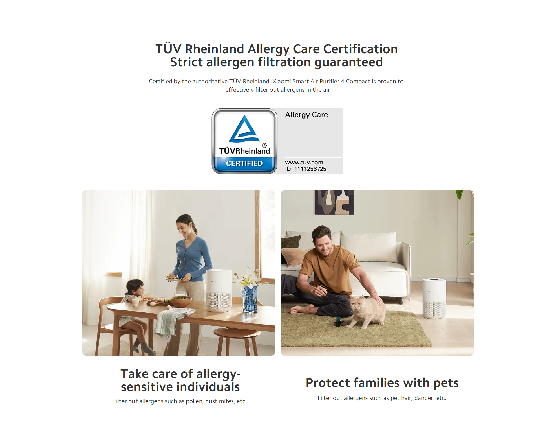 Certified by the authoritative TÜV Rheinland, Xiaomi Smart Air Purifier 4 Compact is proven to