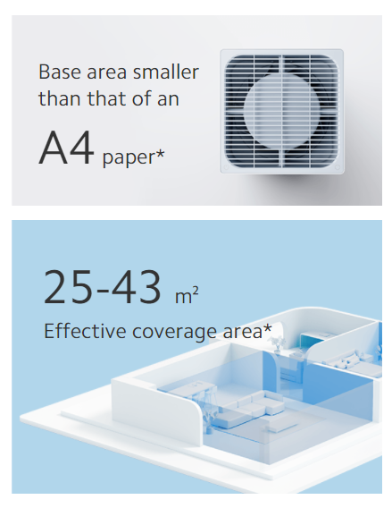 * Base area smaller than that of an A4 sheet of paper: The Xiaomi Smart Air Purifier 4 Lite takes up an area of 24cm x 24cm = 576cm², smaller than that of an A4 sheet of paper (623.7cm²).
