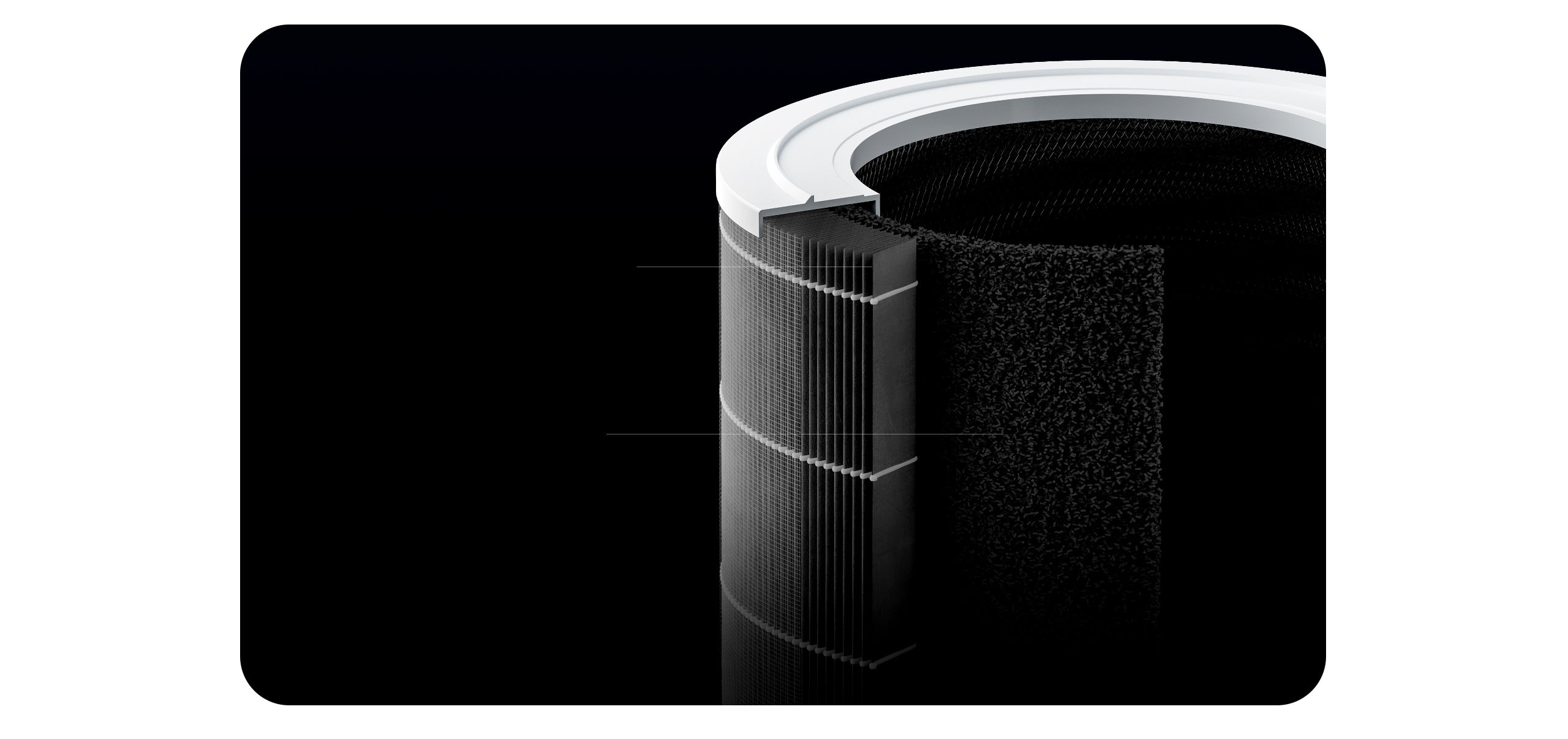 The Xiaomi Smart Air Purifier 4 Pro features a three-in-one filter, including a primary filter, the Xiaomi's High Efficiency Filter and a high-quality activated carbon filter, which work together to purify your air and keep you healthy.